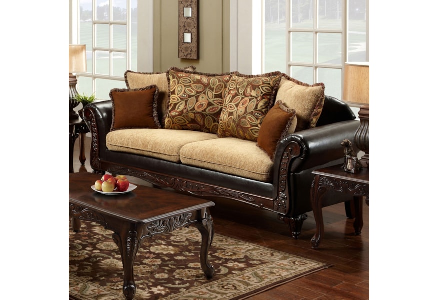 Furniture Of America Foa Doncaster Sm7430 Sf Traditional Sofa With Decorative Wood Trim Del Sol Furniture Sofas